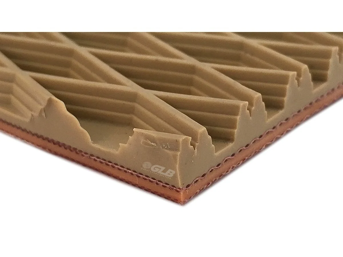If you have been in the belting world long enough odds are you’ve ran into rough top belting. There are a variety of different kinds that are used in a variety of industries. These industries include; package handling/distribution centers, luggage/flight loader belts, synthetics/rubber/plastic manufacturing, wood industry, furniture manufacturing, farming and more. The benefits of these belts are that they cushion loads, absorb impacts, and provide friction. This friction is important in a lot of industries to prevent slippage and rollbacks. Despite the differences between the different types of rough tops, they all have similar build structures. All rough tops have a tension member, a bottom, and some sort of conveying surface with a pattern.